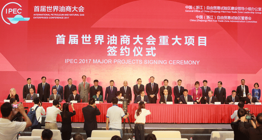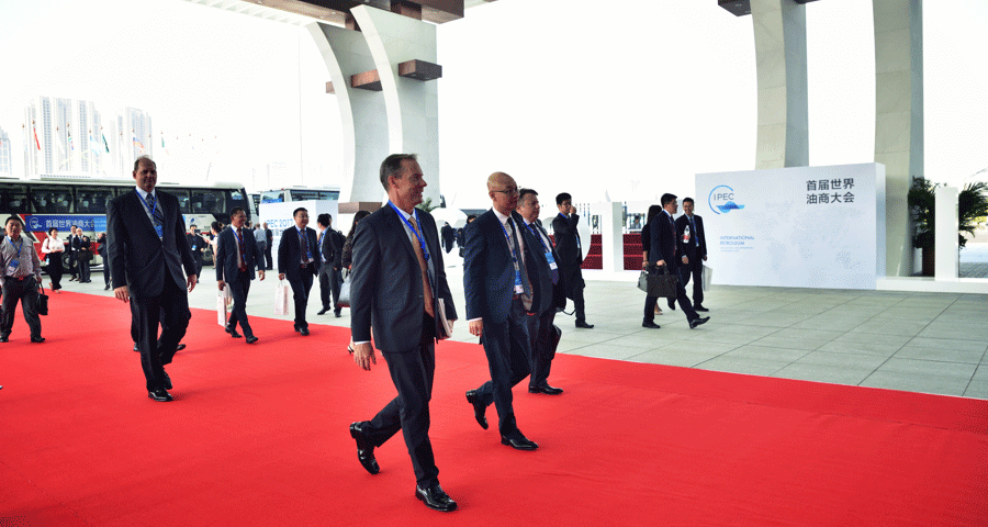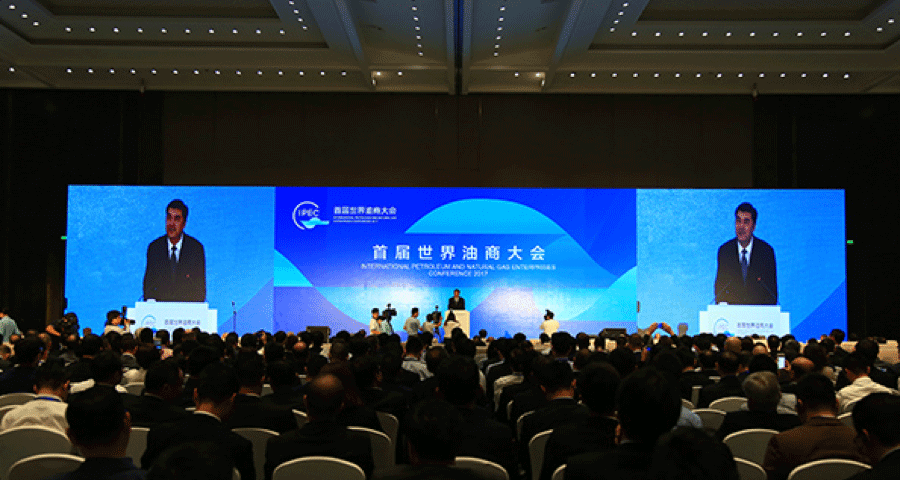 2017年18日上午,首届世界油商大会在杭州国际博览中心开幕。42个国家和地区的800多位嘉宾齐聚一堂,共谋石油、 行业发展大计。