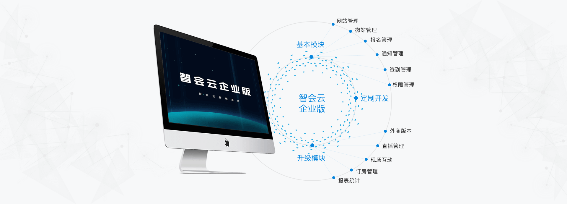 结合商务会议场景,设置3D LOGO墙、投票评选、抽奖、微信墙、抢红包等多种现场互动形式